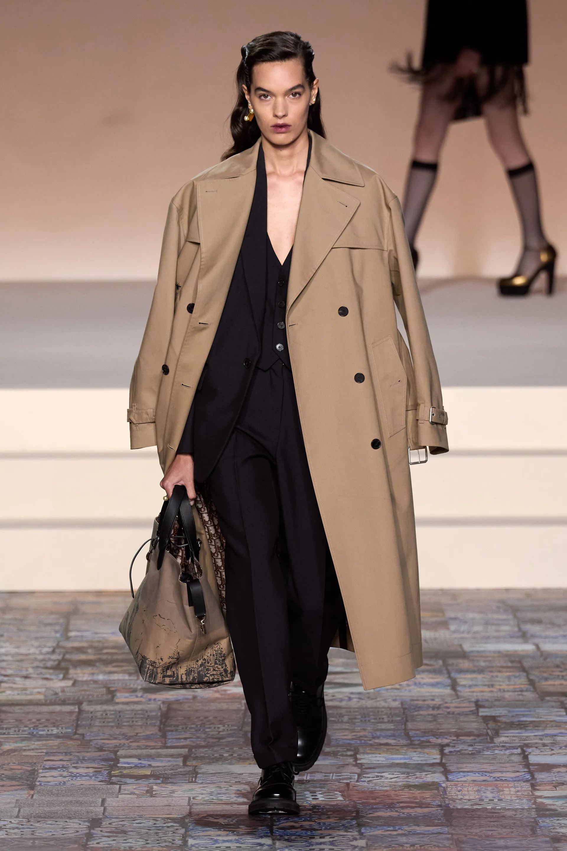 Elsewhere, Chiuri incorporated some classic Dior design elements throughout the collection. One example was a reinterpretation of the famous Franco-American Dior scarf, created to celebrate the USA's bicentennial in 1976. She also revisited the Dior Saddle bags, this time featuring a revamped "New York-Paris" print inspired by the John Galliano era's newspaper print design from the Spring/Summer 2000 collection.