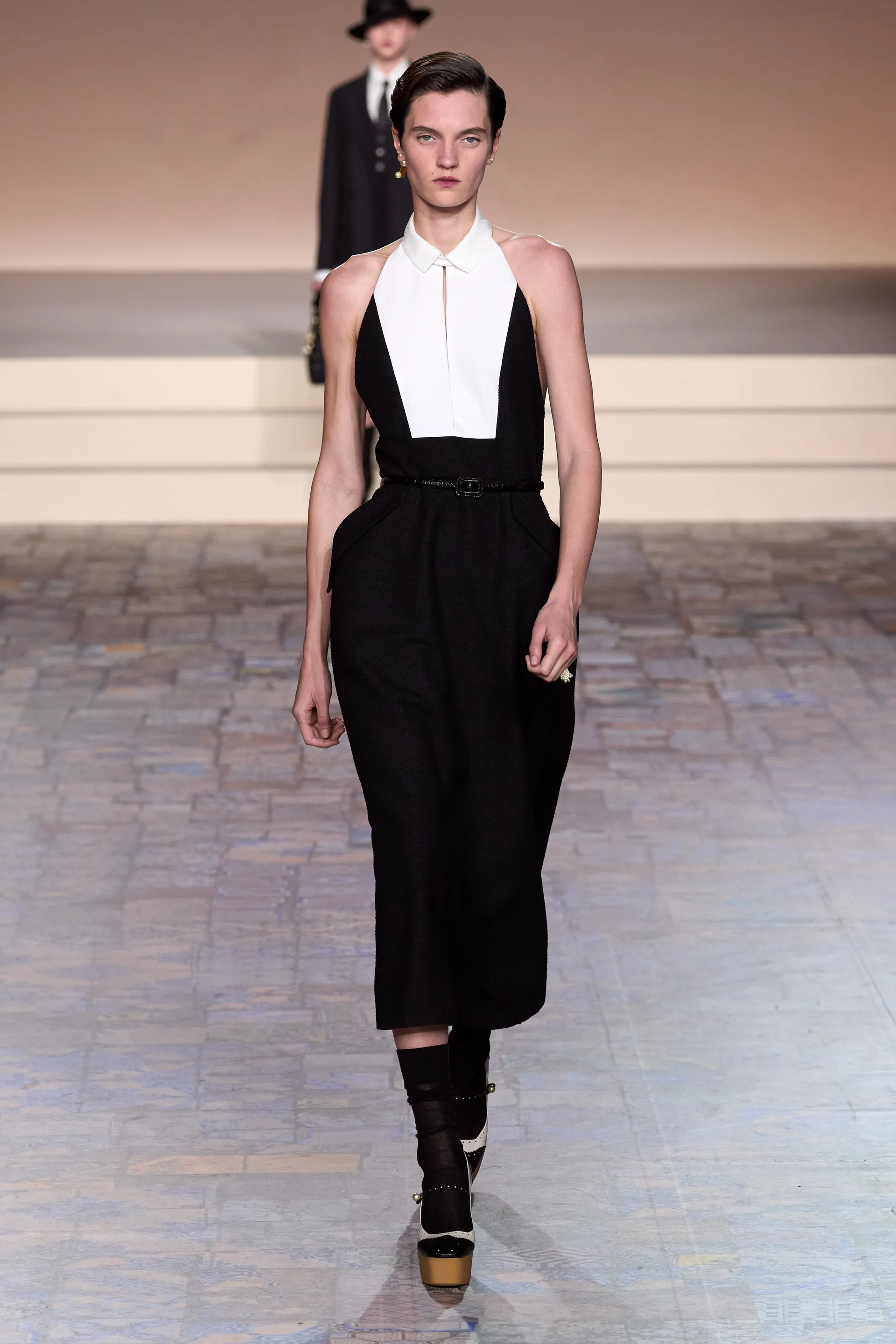 Chiuri's vision drew inspiration from two iconic muses: the legendary actress Marlene Dietrich and the vibrant city of New York itself. The result? An enthralling blend of Parisian chic and American power dressing. Channelling Dietrich's signature style, known for its confident androgyny. Think crisp white shirts, sometimes paired with ties, alongside tailored pleated trousers and sharp blazers. Belted or cowl-neck dresses evoked the elegance of 1940s silhouettes, some adorned with shimmering beadwork for a touch of Hollywood glamour. Prints featuring the Statue of Liberty stood proudly alongside those showcasing the Parisian Eiffel Tower, a clever nod to Dior's transatlantic roots.